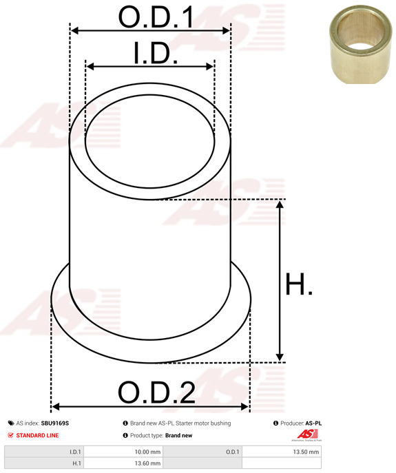 | Outside Diameter (O.D.1) | 13.50 mm |