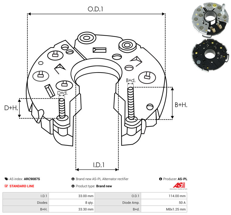 | B+ Stud Diameter & Thread Pitch (B+d) | M8x1.25 mm |