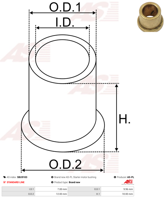| Outside Diameter (O.D.1) | 9.96 mm |