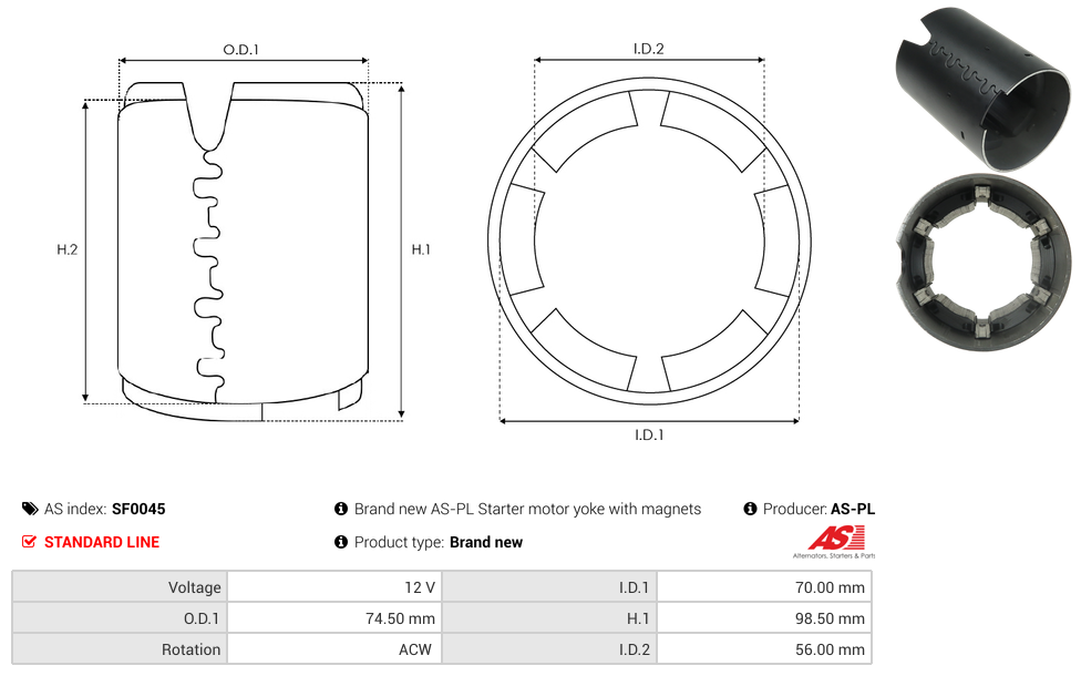 SF0045 - Brand new AS-PL Starter motor yoke with magnets
