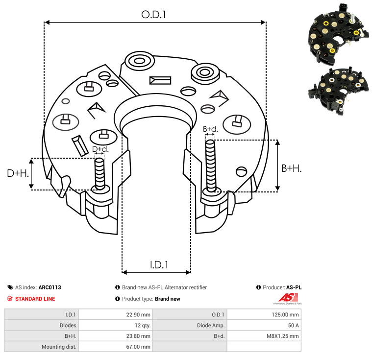 | B+ Stud Diameter & Thread Pitch (B+d) | M8X1.25 mm |