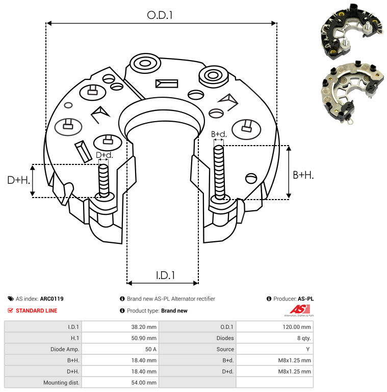 | B+ Stud Diameter & Thread Pitch (B+d) | M8x1.25 mm |