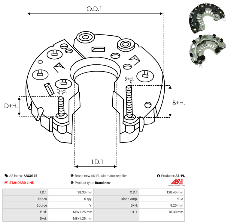 | B+ Stud Diameter & Thread Pitch (B+d) | M8x1.25 mm |