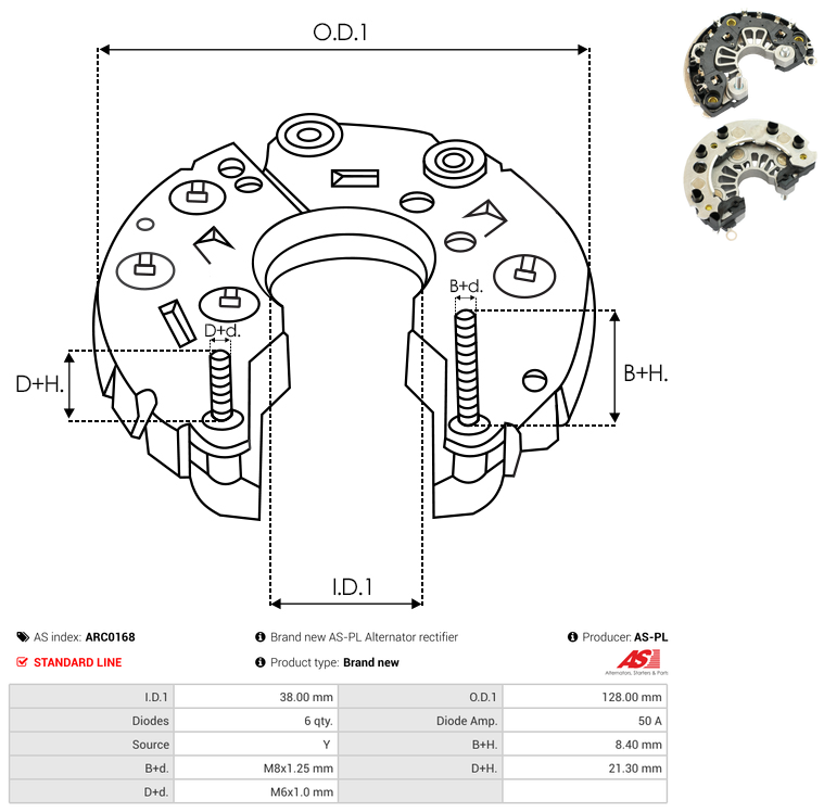 | B+ Stud Diameter & Thread Pitch (B+d) | M8x1.25 mm |