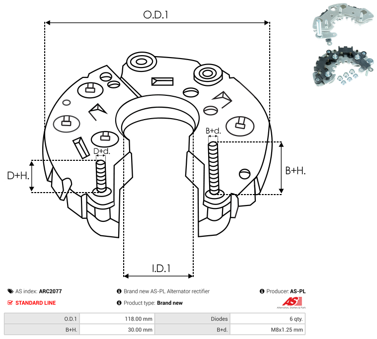 | B+ Stud Diameter & Thread Pitch (B+d) | M8x1.25 mm |
