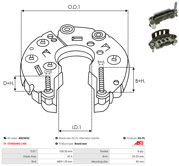 | B+ Stud Diameter & Thread Pitch (B+d) | M8X1.25 mm |