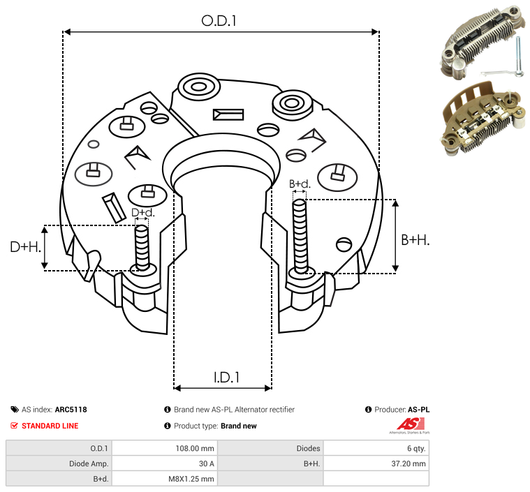 | B+ Stud Diameter & Thread Pitch (B+d) | M8X1.25 mm |