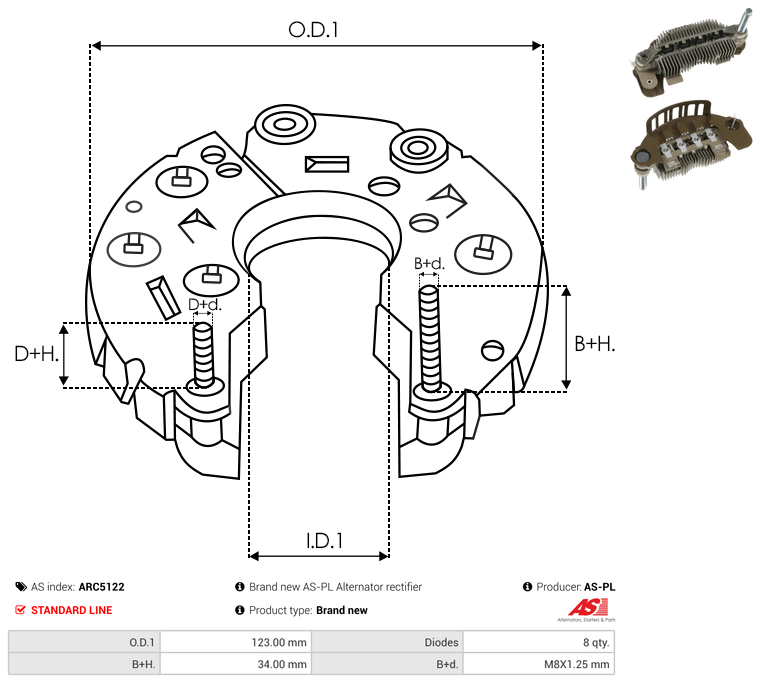 | B+ Stud Diameter & Thread Pitch (B+d) | M8X1.25 mm |