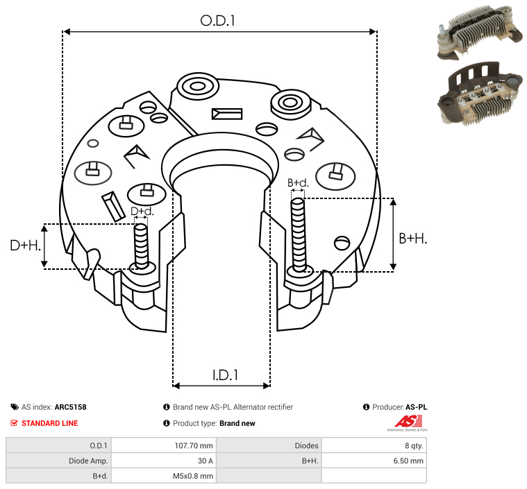 | B+ Stud Diameter & Thread Pitch (B+d) | M5x0.8 mm |