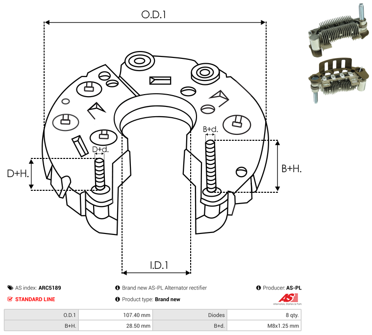 | B+ Stud Diameter & Thread Pitch (B+d) | M8x1.25 mm |