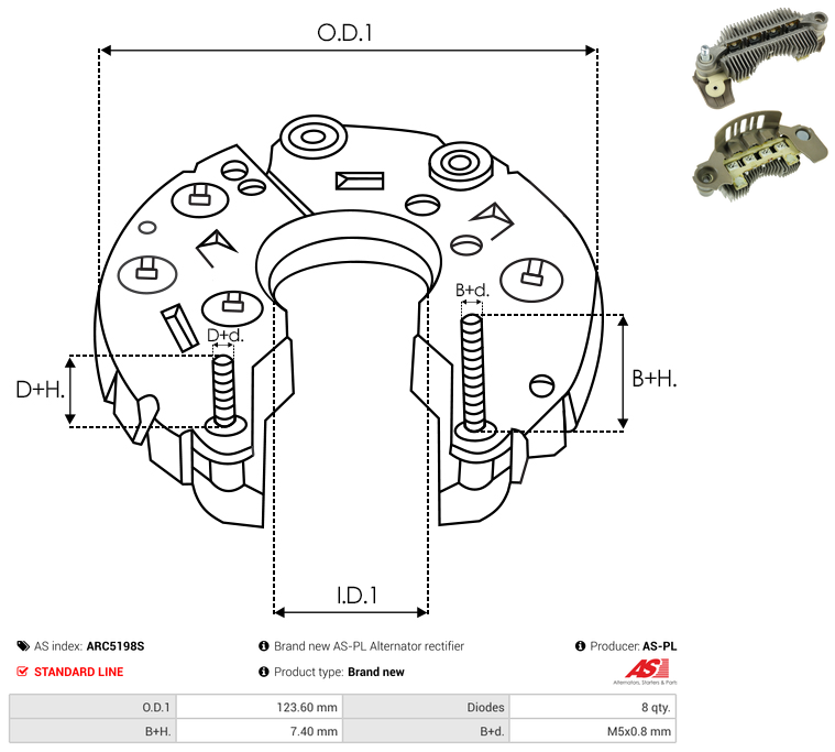 | B+ Stud Diameter & Thread Pitch (B+d) | M5x0.8 mm |