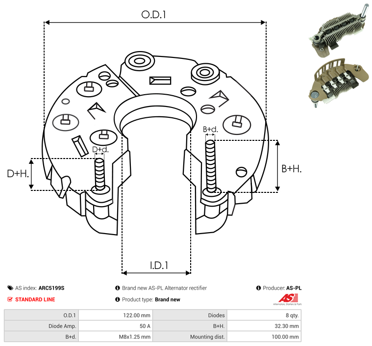 | B+ Stud Diameter & Thread Pitch (B+d) | M8x1.25 mm |