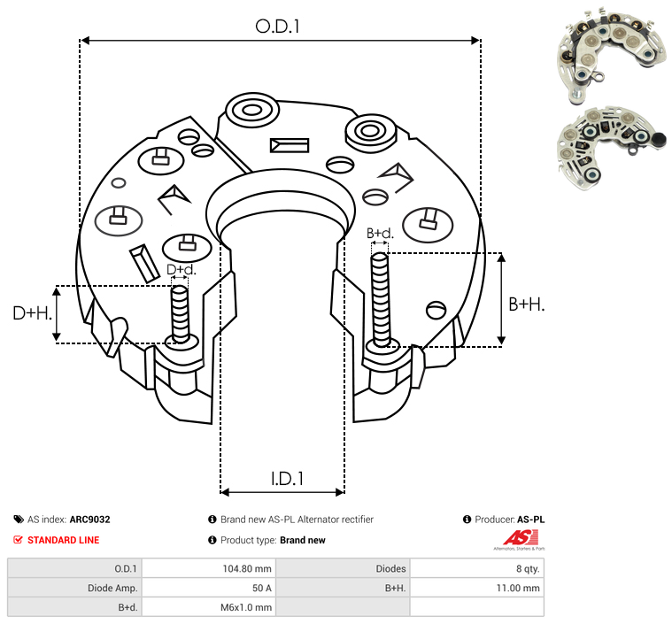 | B+ Stud Diameter & Thread Pitch (B+d) | M6x1.0 mm |