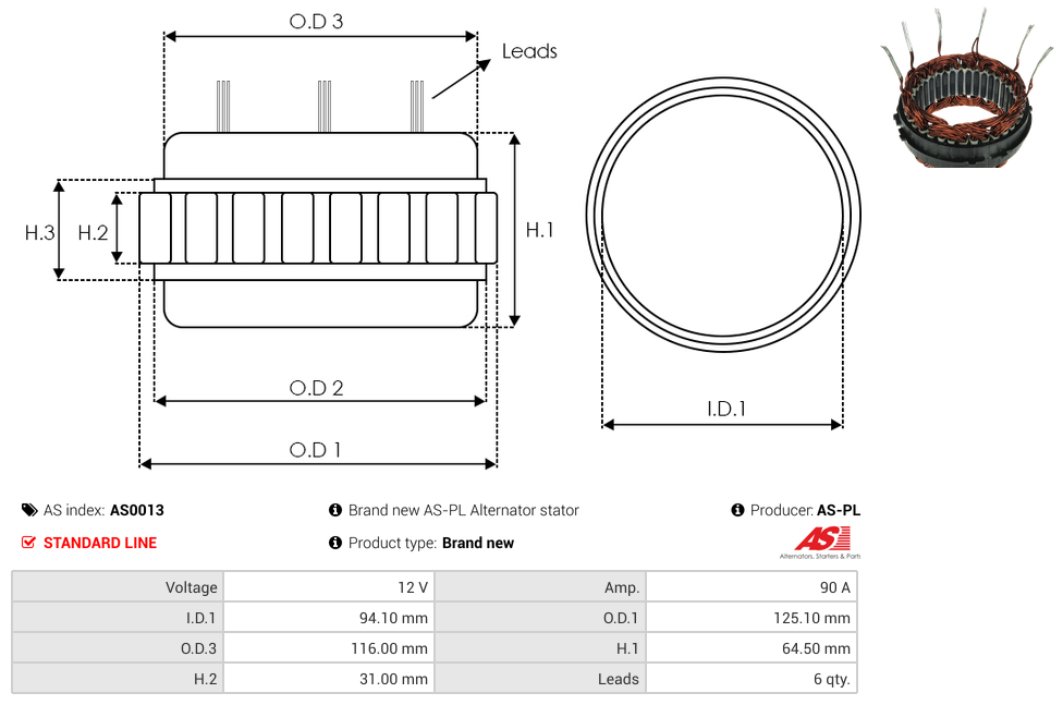 | Outside Diameter of Windings (O.D.3) | 116 mm |