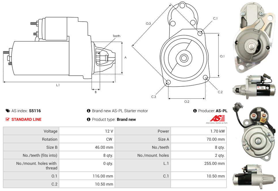 | Mount Hole Center - Center (O.1) | 116 mm |