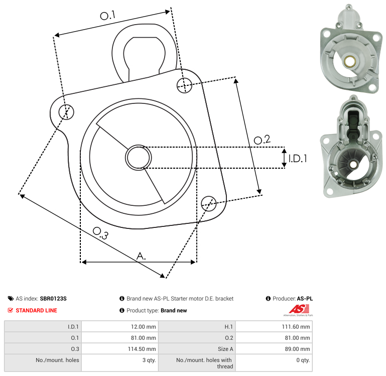 | No./Mount holes | 3 qty |