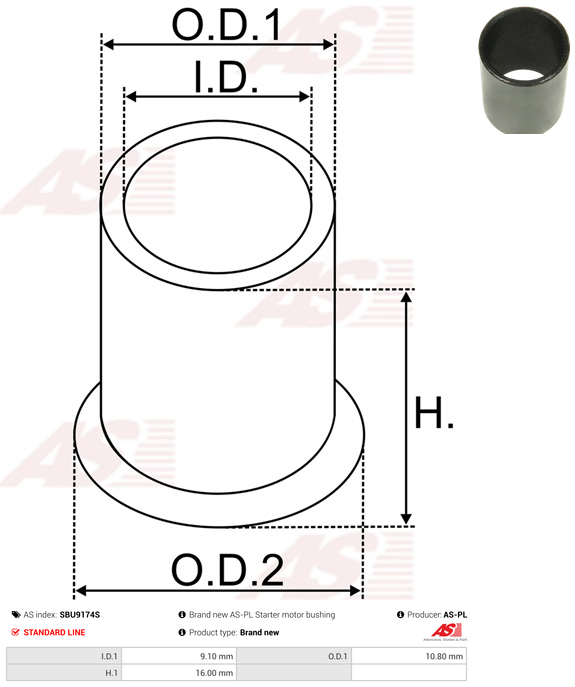 | Inside Diameter (I.D.1) | 9.10 mm |