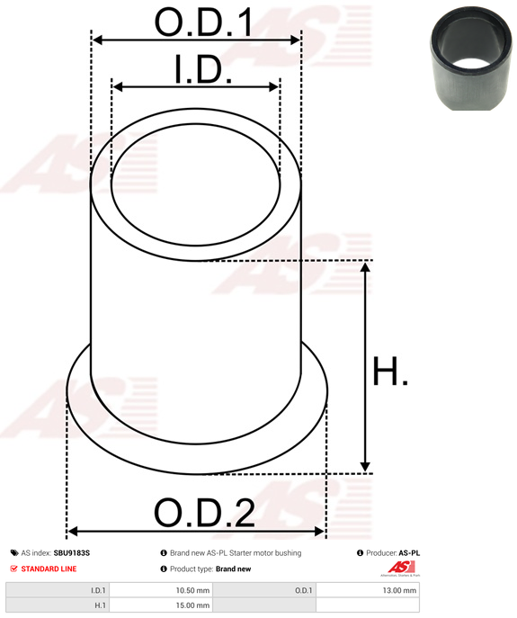 | Inside Diameter (I.D.1) | 10.50 mm |