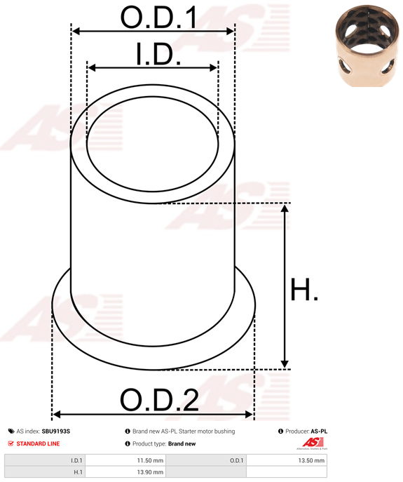 | Outside Diameter (O.D.1) | 13.50 mm |
