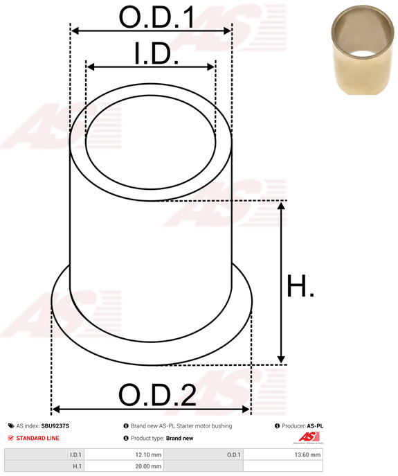 | Outside Diameter (O.D.1) | 13.60 mm |