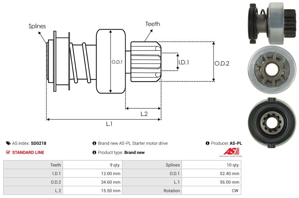 | No./Splines | 10 qty |