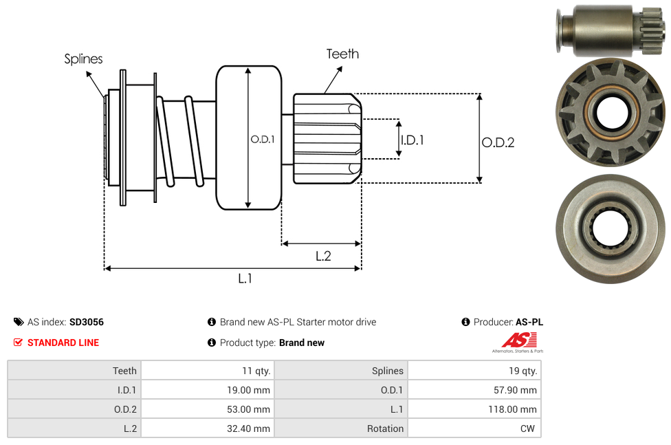 | No./Splines | 19 qty |