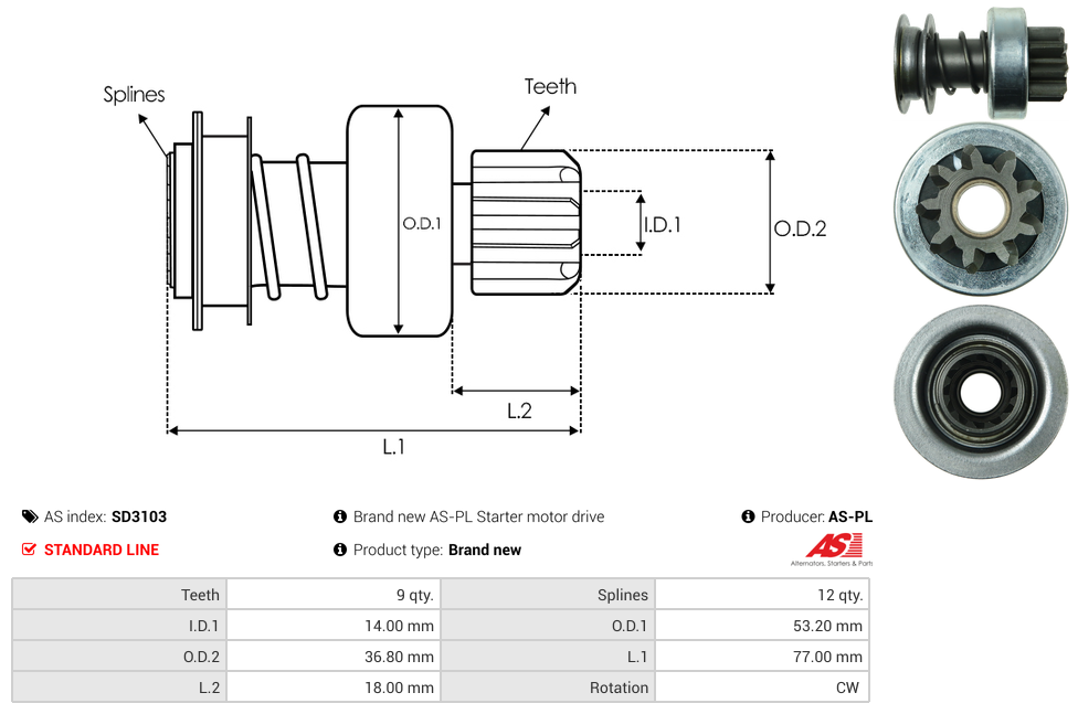 | No./Splines | 12 qty |