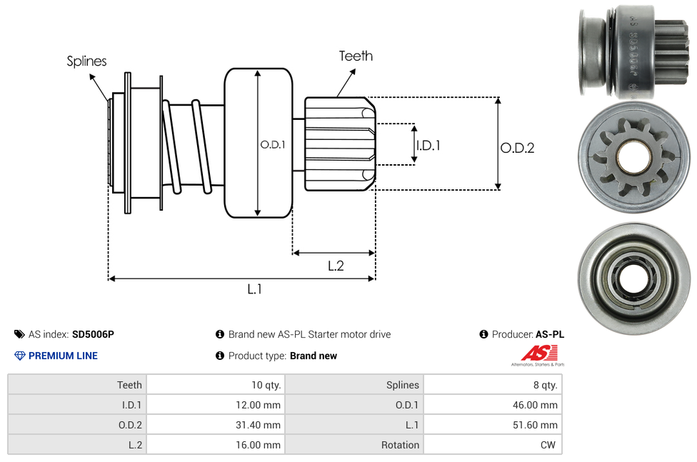 | No./Splines | 8 qty |