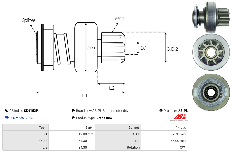 | No./Splines | 14 qty |