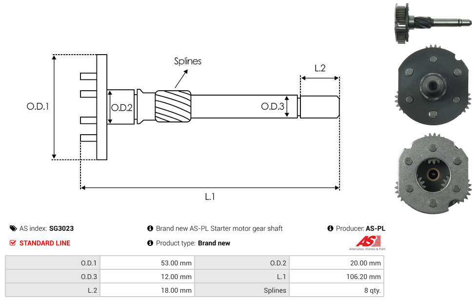 | No./Splines | 8 qty |