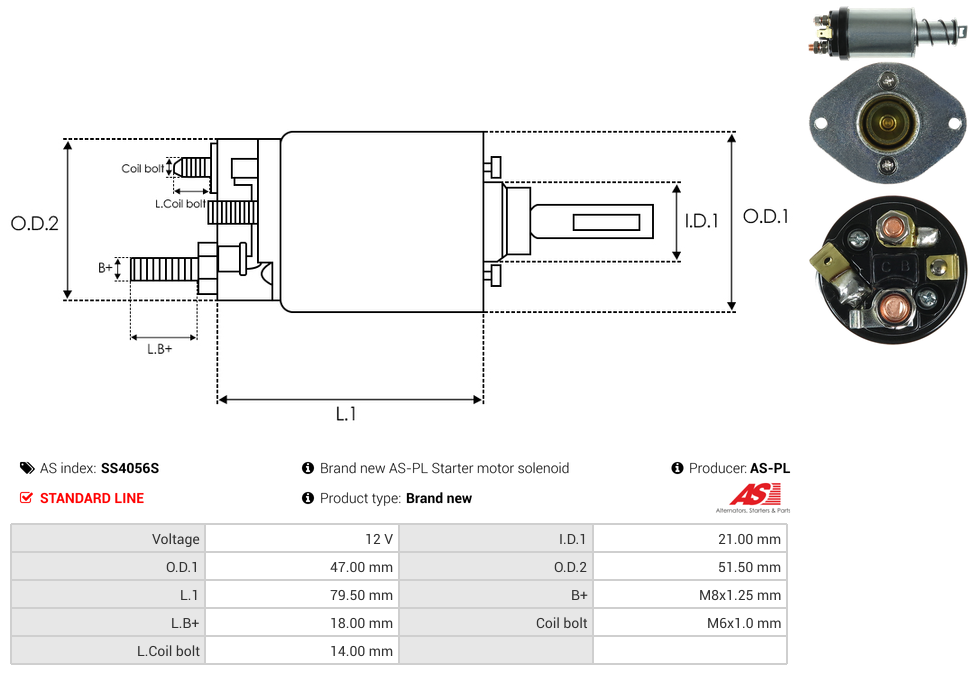 | B+ Stud Diameter & Thread Pitch (B+) | M8x1.25 mm |