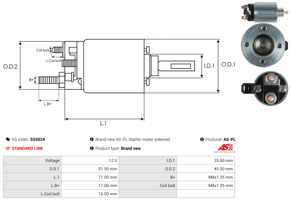 | B+ Stud Diameter & Thread Pitch (B+) | M8x1.25 mm |