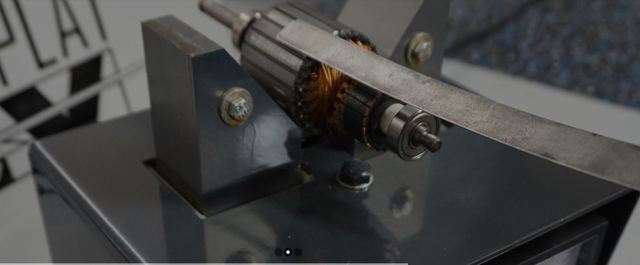 To test the core of the armature, you simply place it on the V-block, rest the supplied metal strip on the core and slowly turn the armature around its axis. Possible short circuits are identified by small vibrations of the metal strip. The faulty collectors are located where the armature slot and the metal strip meet.