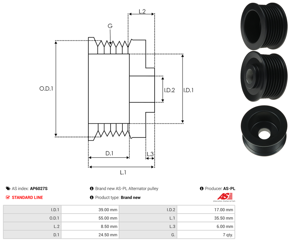 | Inside Diameter (I.D.1) | 39.00 mm |