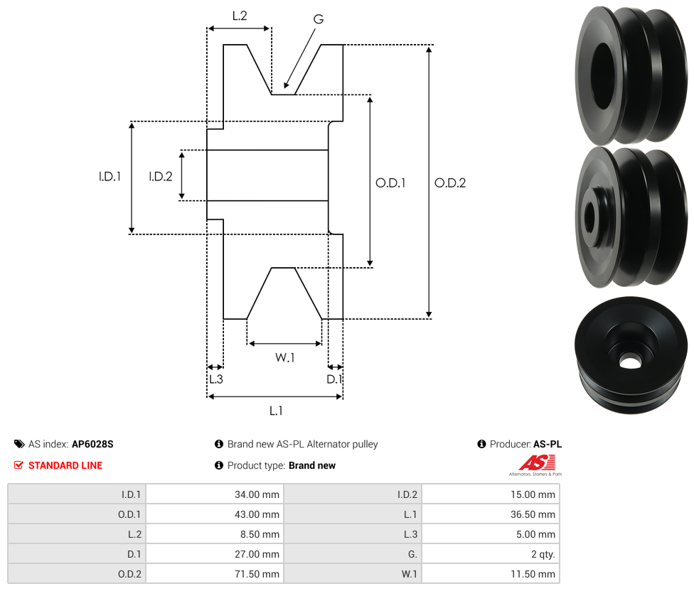 | Outside Diameter (O.D.2) | 71.50 mm |