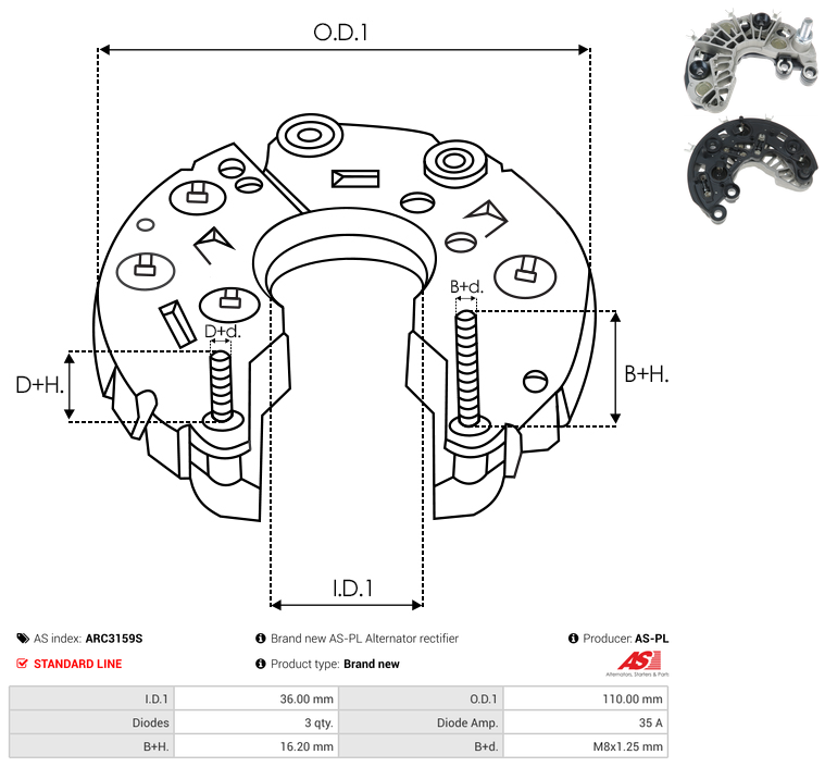 | B+ Stud Diameter & Thread Pitch (B+d) | M8x1.25 mm |