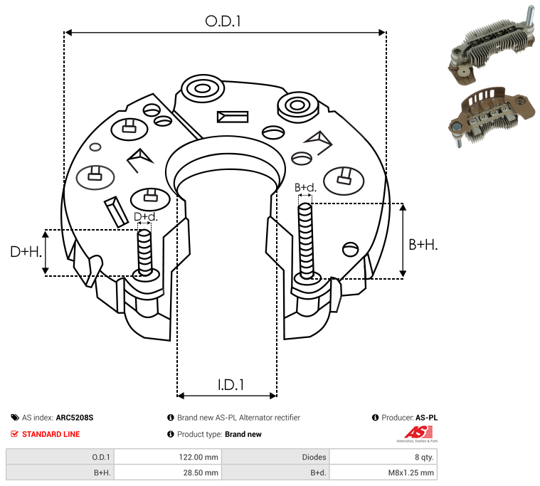 | B+ Stud Diameter & Thread Pitch (B+d) | M8x1.25 mm |