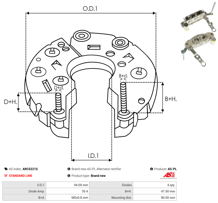 | B+ Stud Diameter & Thread Pitch (B+d) | M5x0.8 mm |