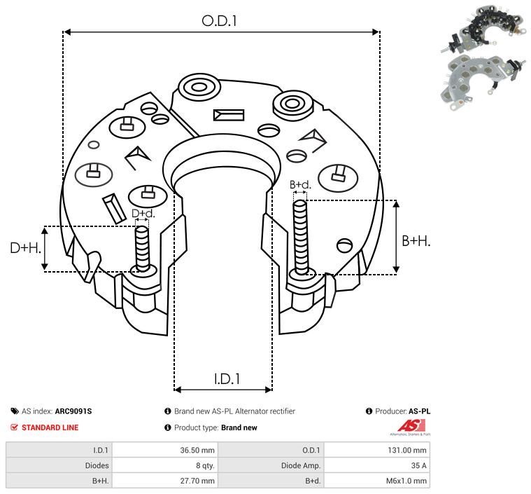 | B+ Stud Diameter & Thread Pitch (B+d) | M6x1.0 mm |