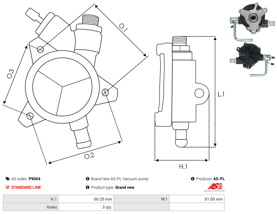 | No./Mount holes | 3 qty |