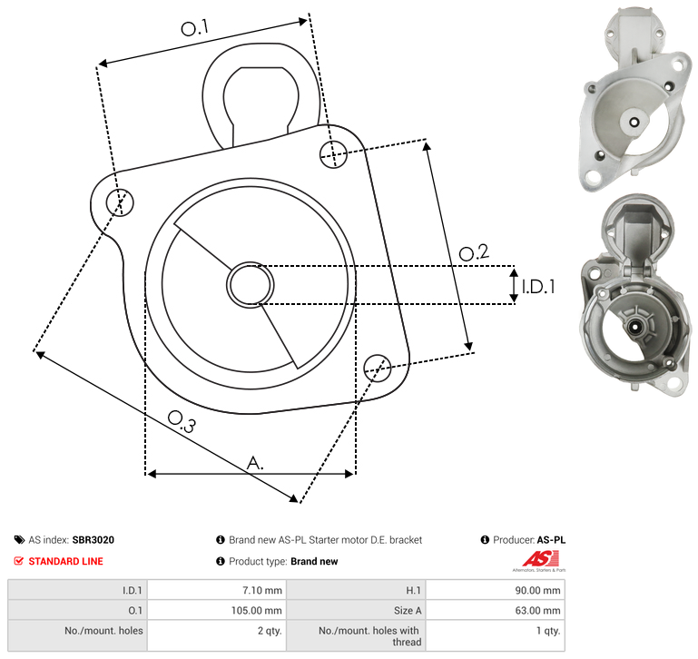 | Mount Hole Center - Center (O.1) | 105 mm |