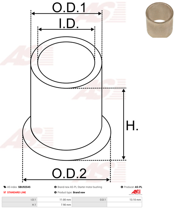 | Outside Diameter (O.D.1) | 13.10 mm |