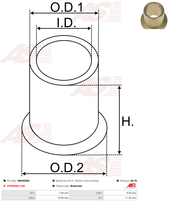 | Outside Diameter (O.D.1) | 9.50 mm |