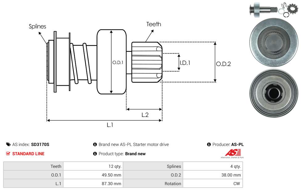 | No./Splines | 4 qty |