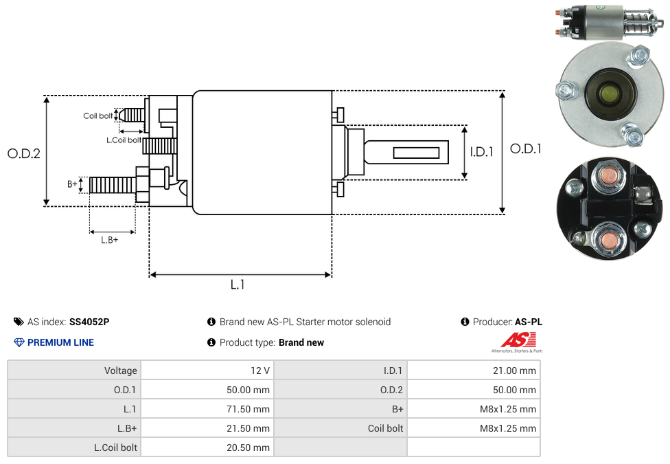 | B+ Stud Diameter & Thread Pitch (B+) | M8x1.25 mm |