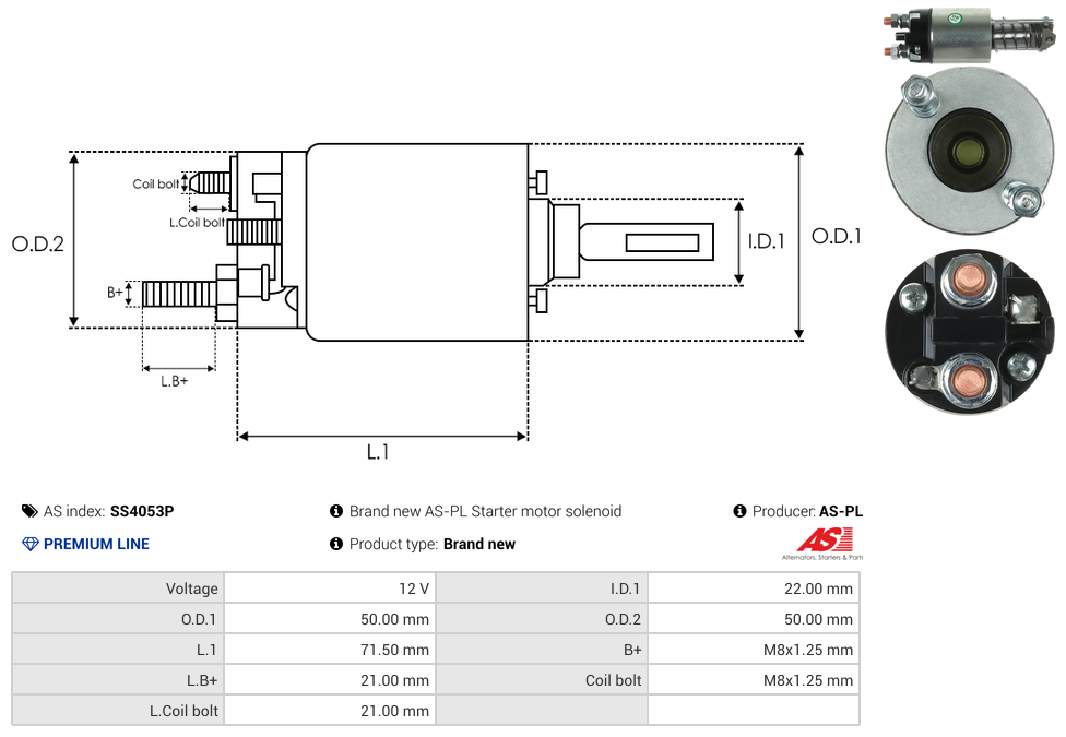 | B+ Stud Diameter & Thread Pitch (B+) | M8x1.25 mm |