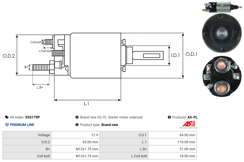 | B+ Stud Diameter & Thread Pitch (B+) | M12x1.75 mm |