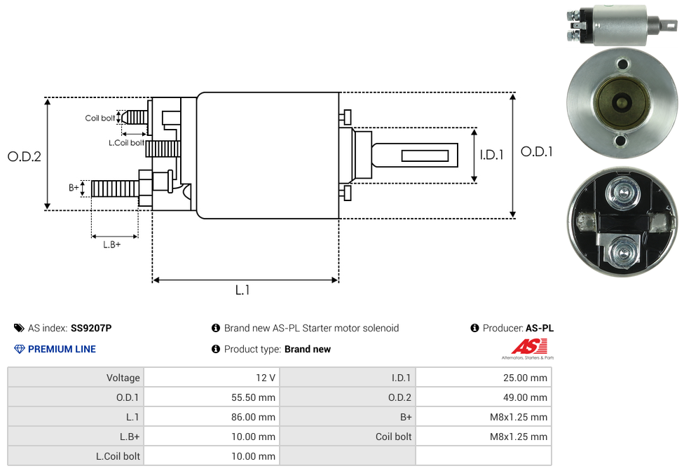 | B+ Stud Diameter & Thread Pitch (B+) | M8x1.25 mm |