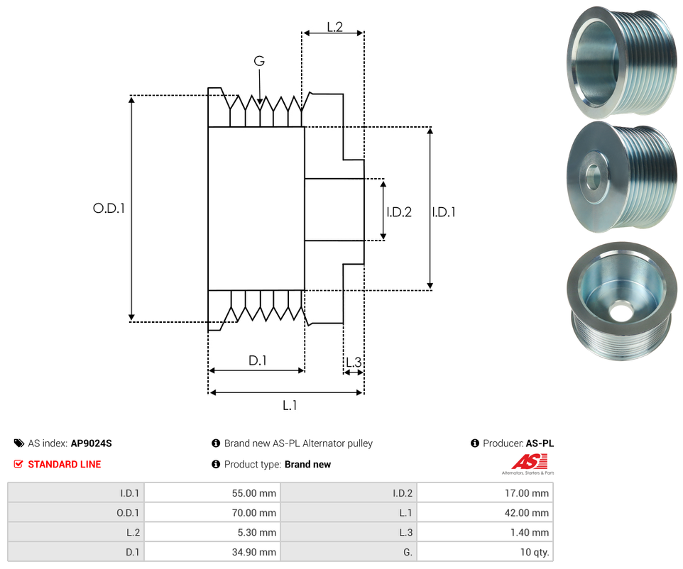 | Pulley Grooves | 10 qty |