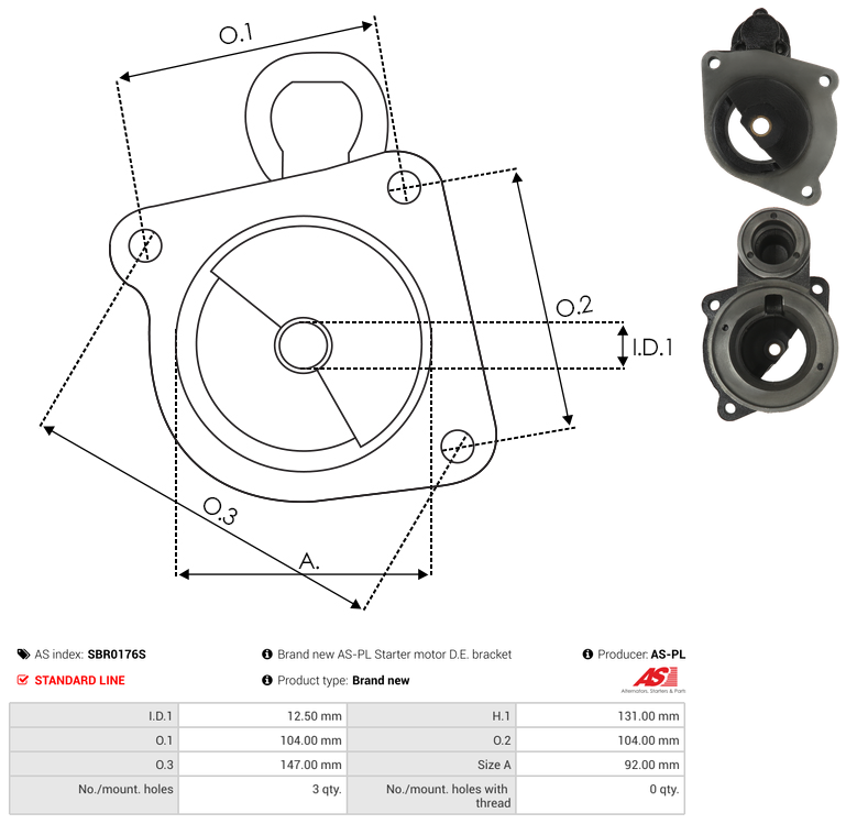 | No./Mount holes | 3 qty |
